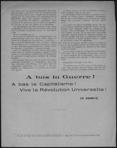 Appel du Comité pour la reprise des relations internationales (CRRI) pour la paix et la défense de la Révolution russe qui est le signal de la "Révolution universelle".