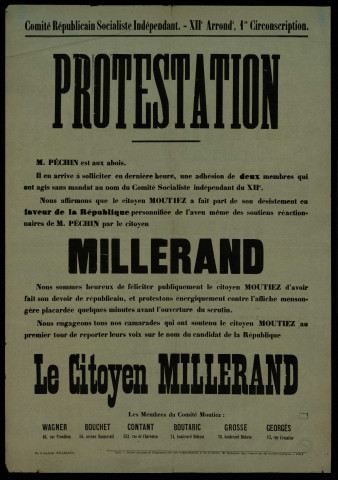 Comité Républicain Socialiste Indépendant : Candidat de la République Millerand