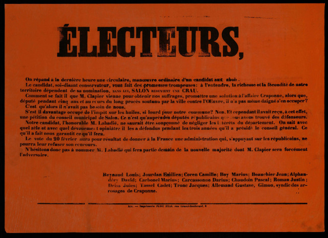 On répand Une circulaire N'hésitons donc pas à nommer M. Labadié de la nouvelle majorité