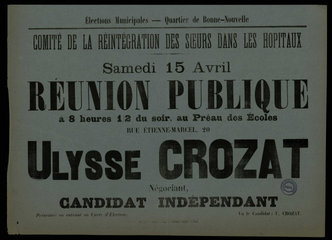 Élections Municipales Quartier Bonne-Nouvelle : Réunion Publique Ulysse Crozat Candidat indépendant