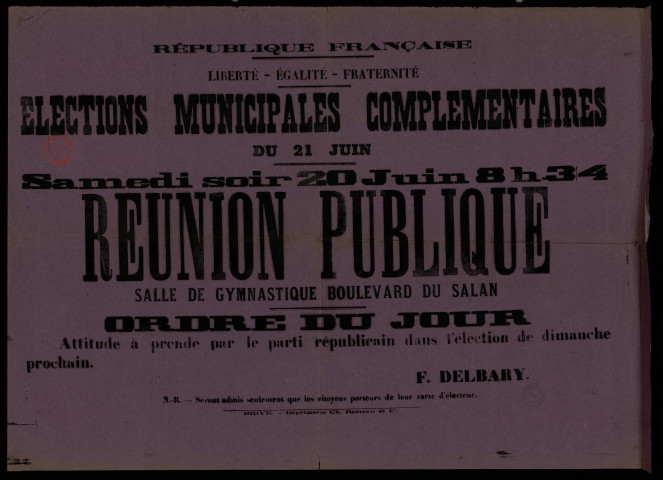 Élections Municipales Complémentaires : Réunion Publique Parti républicain