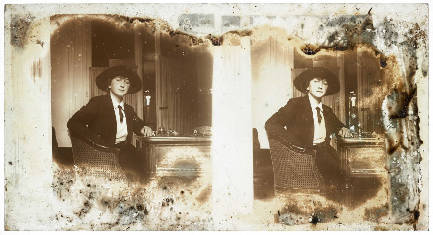 La collection des plaques de verre de La contemporaine regroupe plus de 6000 plaques, supports photographiques constitués d'une plaque de verre de dimension variable et d'une couche d'émulsion au gélatinobromure d'argent. Ce dernier procédé adopté à partir de 1871 permit une fabrication industrielle et une utilisation plus simple et démocratique (avec la possibilité de surseoir au développement), d'où la variété des sujets représentés ici. La collection est composée de négatifs mais aussi de beaucoup de positifs stéréoscopiques (deux images identiques sur une même plaque qui, une fois mise dans un appareil stéréoscopique, donne une sensation de relief). Si ce procédé fut en usage surtout entre les années 1870 et 1940, la plus grande partie de ce fonds concerne les premières années du XXe siècle et en particulier la Première Guerre mondiale. Du fait de la nature du support, l'usage fut de regrouper les multiples dons ou achats plus ou moins importants, parfois anonymes, rendant aujourd'hui leur identification difficile. Les plaques de verre relevant d'un fonds important et composite (tirages, négatifs) sont classées au sein de ces fonds (Pétain, Gendre, Beurier...). On retrouvera ici les ensembles plus modestes, identifiés ou pas si le nom du donateur a été retrouvé. Parmi les fonds anonymes, on a distingué du fait de leur importance les fonds concernant le premier conflit mondial. Cette collection a été entièrement numérisée.