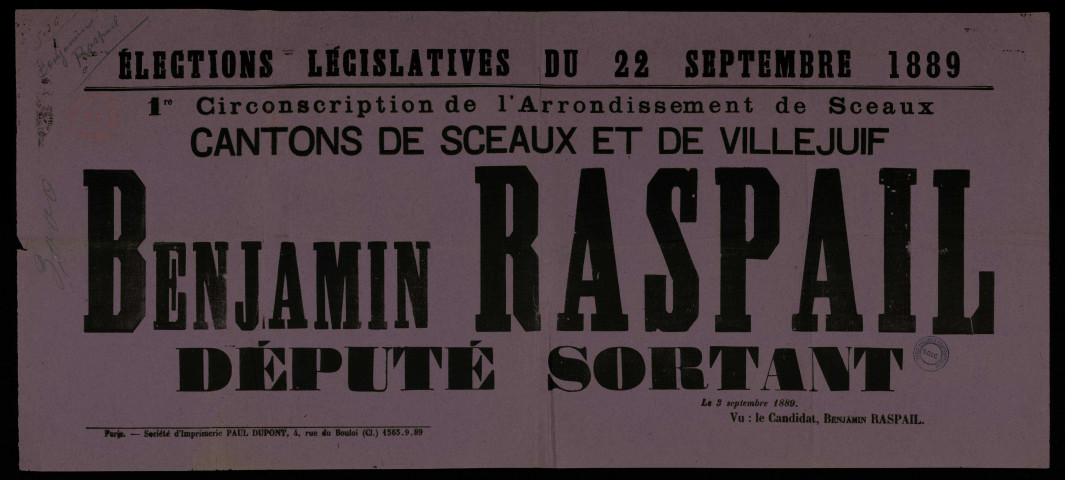 Élections législatives Cantons de Sceaux et de Villejuif : Benjamin Raspail