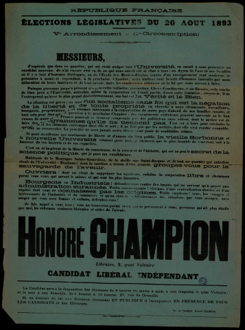 Élections Législatives : Honoré Champion Candidat Libéral Indépendant