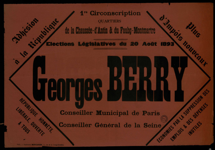Quartiers de la Chaussée-d'Antin et du Faubg-Montmartre Élections Législatives : Georges Berry