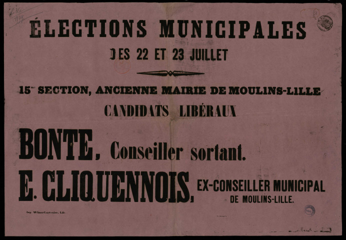 Ancienne mairie de Moulins-Lille : Candidats Libéraux Bonte Cliquennois