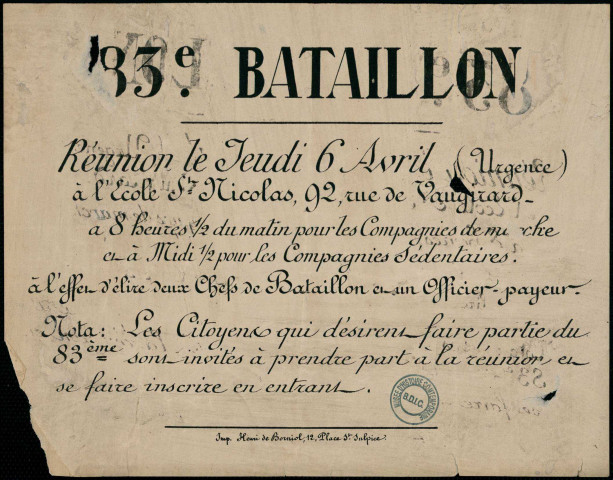 Réunion À l'effet d'élire Deux chefs de Bataillon