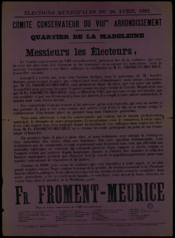 Élections municipales Quartier de la Madeleine : Fr. Froment-Meurice