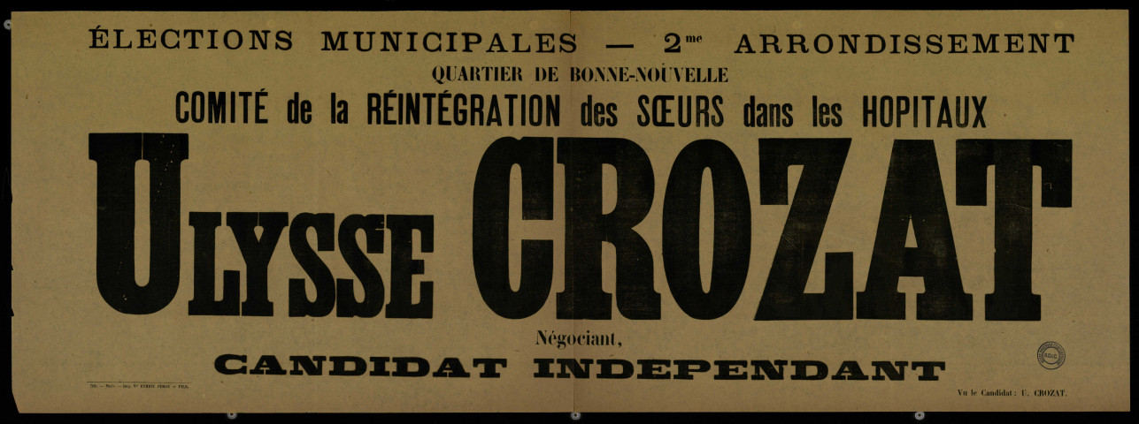 Élections Municipales : Comité de la Réintégration des Sœurs dans les Hôpitaux Ulysse Crozat Candidat