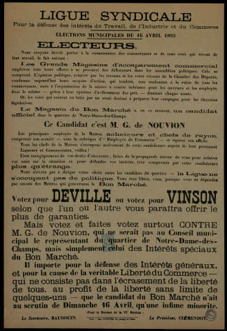 Ligue syndicale Élections Municipales : Votez pour Deville ou votez pour Vinson